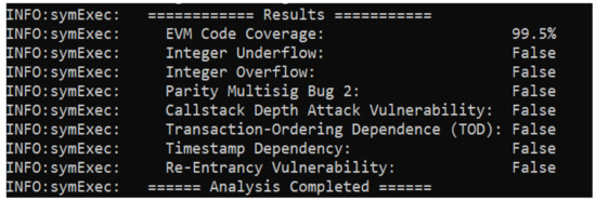 - Luu, L.; Chu, D.-H.; Olickel, H.; Saxena, P.; Hobor, A. Making smart contracts smarter. In Proceedings of the 2016 ACM SIGSAC Conference on Computer and Communications Security, Vienna, Austria, 24–28 October 2016. [Google Scholar]