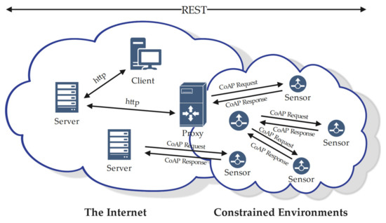 - Shelby, Z.; Hartke, K.; Bormann, C.; Frank, B. RFC 7252: The Constrained Application Protocol (CoAP). Internet Engineering Task Force (IETF). 2014. Available online: https://www.rfc-editor.org/rfc/pdfrfc/rfc7252.txt.pdf (accessed on 11 June 2021).