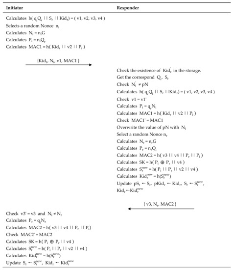 | 1 | Original data and private key of Initiator (I) and Responder (R) | Perfect forward secrecy, Known-Key Attack, Key Compromise Impersonation Attack |