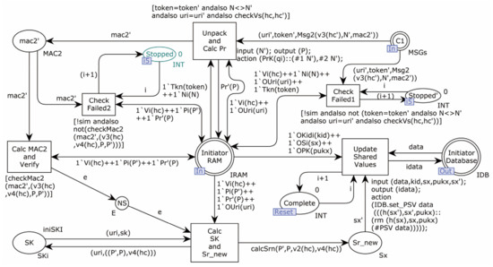 - Yang, X.; Jiao, J.; Shi, Y.; Liu, Y. Modeling and Security Analysis Method of Quantum Key Distribution Protocol Based on Colored Petri Nets. In Proceedings of the 2019 IEEE 19th International Conference on Communication Technology (ICCT), Xi’an, China, 16–19 October 2019; pp. 283–289. [Google Scholar]