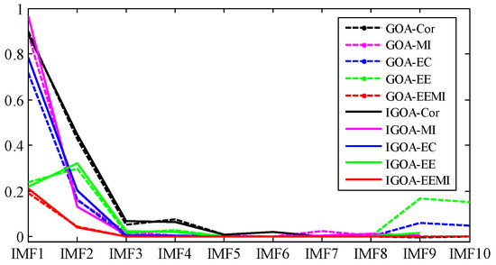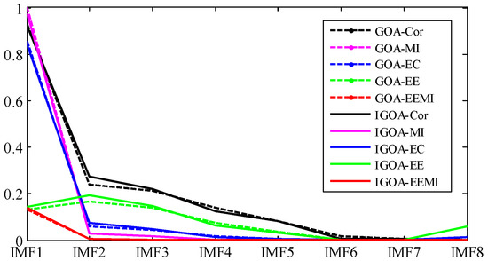 30]. MI can characterize the interdependence and matching degree between two signals. If only MI is used as the objective function, the information related to the original signal will be preserved, and the information related to the fault may be lost.