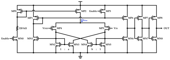 The structure of a hysteresis comparator is stated in Figure 3. In this structure, and can be defined by MN3 and MN4 [10]. and can be calculated by the following expressions [10]:
