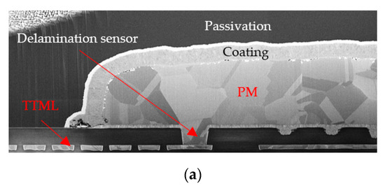 The cross-sections depicting the PM, the delamination sensor and the TTML are presented in Figure 18.