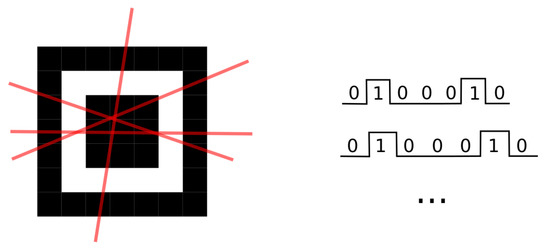 - Belussi, L.; Hirata, N. Fast QR Code Detection in Arbitrarily Acquired Images. In Proceedings of the 2011 24th SIBGRAPI Conference on Graphics, Patterns and Images, Maceio, Brazil, 28–31 August 2011; pp. 281–288. [Google Scholar] [CrossRef]