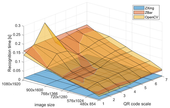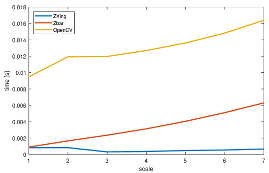 - The Nyquist limit (Scale = 1) is generally a difficult situation for any of the decoders; however, they still are able to decode some information. The best results are offered by OpenCV, whereas ZBar returned the poorest results in this case. It conforms also to the results in Figure 11, where the OpenCV offers the best for low scales.