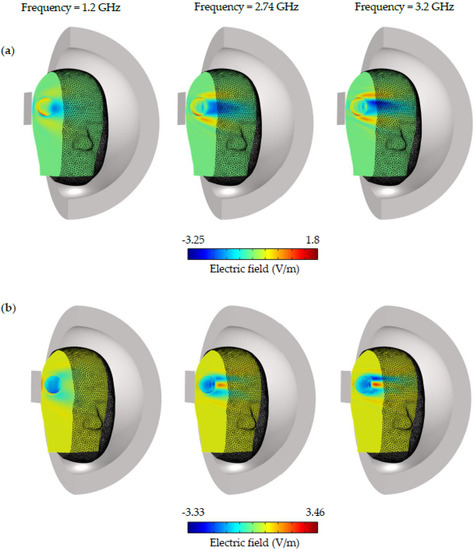 - Qureshi, A.M.; Mustansar, Z.; Mustafa, S. Finite-element analysis of microwave scattering from a three-dimensional human head model for brain stroke detection. R. Soc. Open Sci. 2018, 5, 180319. [Google Scholar] [CrossRef]