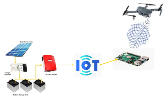 An architecture diagram for IoT off-grid and drone data collection is presented in Figure 3.