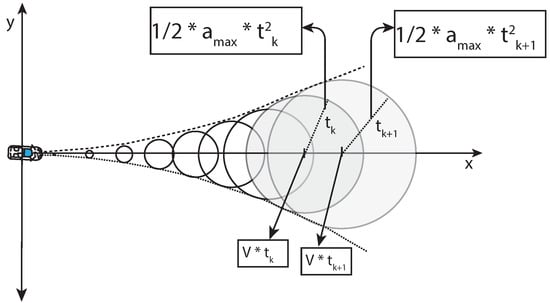 It is challenging to consider the trajectory of whether the representation of a vehicle over time is possible or not. Past studies [29,32] described the overapproximated occupancy at time t with center c(t) and radius r(t), as shown in Figure 8: