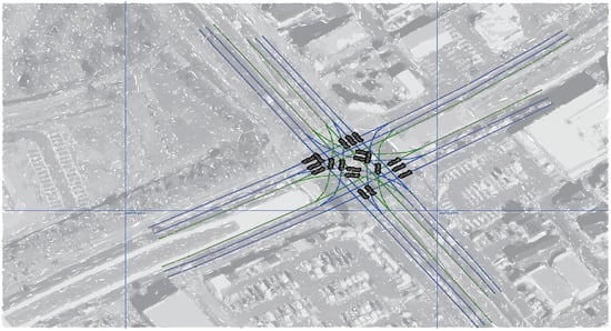 (Scenario-1) An example of an intersection center (geographical data from OSM [36] are illustrated as a superimposed background image).