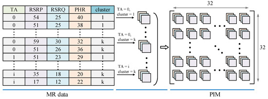 TA is used as a key position index, and the number of clusters k for the records of the same TA are used to perform clustering. If only a few records satisfy TA, then these records are not of analytical value, and are thus considered unnecessary records. From the k clusters, records are sequentially extracted as the constituent elements of the PIM. We use random sampling during the sampling process. In theory, records with the same TA can be divided into two categories. However, the actual measurement report becomes more complicated because of the environmental factors involved. To ensure that key information is not lost, we set k ⩾ 2.