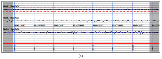 Excessive deviation of track geometry can cause irregularities, affecting operation safety, train speed, and passenger comfort [10]. Therefore, it is common to access the local values and the average of a certain track length (e.g., 200 m). Peak values indicate specific locations with large irregularities (see Figure 2a, the track geometry trace of Network Rail), which is used as an evaluation index to determine the locations that need temporary maintenance, emergency repair, or speed limitation. Conversely, average values show the smoothness of a piece of track (see Figure 2b, the Colour Coded Quality Chart of Network Rail), indicating the quality of a larger range of tracks and consequently advising the track maintenance scheme at a network level [11].