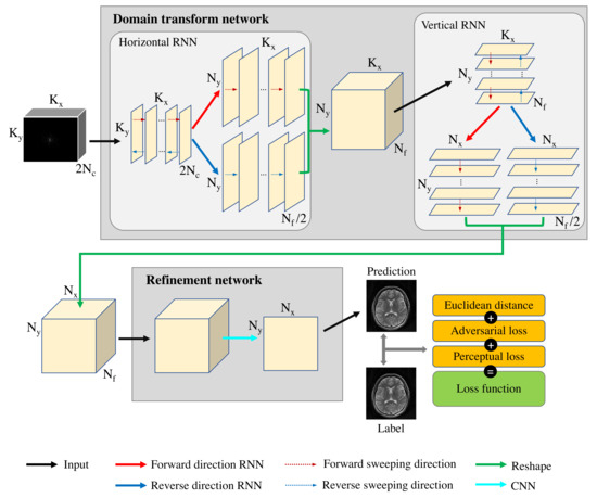 - Oh, C.; Kim, D.; Chung, J.Y.; Han, Y.; Park, H. A k-space-to-image reconstruction network for MRI using recurrent neural network. Med. Phys. 2021, 48, 193–203. [Google Scholar] [CrossRef] [PubMed]