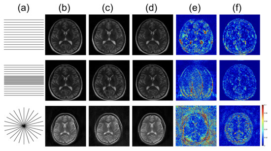 - Lustig, M.; Donoho, D.; Pauly, J.M. Sparse MRI: The application of compressed sensing for rapid MR imaging. Magn. Reson. Med. Off. J. Int. Soc. Magn. Reson. Med. 2007, 58, 1182–1195. [Google Scholar] [CrossRef] [PubMed]
