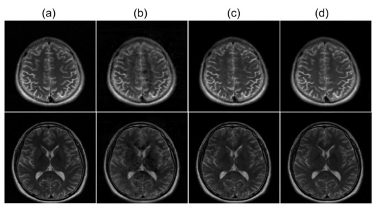 - Muckley, M.J.; Riemenschneider, B.; Radmanesh, A.; Kim, S.; Jeong, G.; Ko, J.; Jun, Y.; Shin, H.; Hwang, D.; Mostapha, M.; et al. Results of the 2020 fastmri challenge for machine learning mr image reconstruction. IEEE Trans. Med. Imaging 2021, 40, 2306–2317. [Google Scholar] [CrossRef] [PubMed]