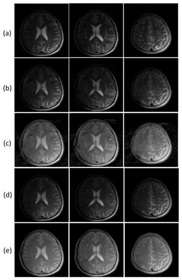 - Pruessmann, K.P.; Weiger, M.; Scheidegger, M.B.; Boesiger, P. SENSE: Sensitivity encoding for fast MRI. Magn. Reson. Med. 1999, 42, 952–962. [Google Scholar] [CrossRef]