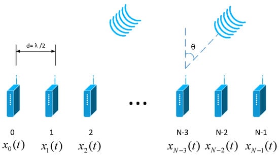 A uniform linear array (ULA) composed of isotropic antennas with inter-element spacing is considered, as shown in Figure 1.