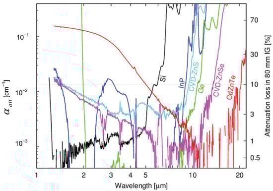 - Ramsay, S.K.; McLean, I.S.; Takami, H.; Kaji, S.; Sarugaku, Y.; Ikeda, Y.; Kobayashi, N.; Nakanishi, K.; Kondo, S.; Yasui, C.; et al. The precise measurement of the attenuation coefficients of various IR optical materials applicable to immersion grating. In Proceedings of the Ground-based and Airborne Instrumentation for Astronomy V, Montreal, QC, Canada, 22–26 June 2014. [Google Scholar]