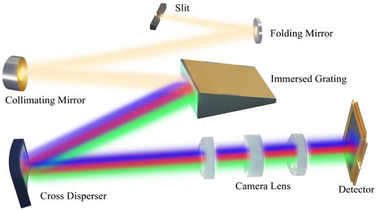 - Ning, C.L.; Qi, X.D.; Chen, S.J.; Bayanheshig; Cui, J.C. Optical Design and Performance Analysis of Light and Small Echelle Spectrograph. Spectrosc. Spectr. Anal. 2012, 32, 3406–3410. [Google Scholar] [CrossRef]