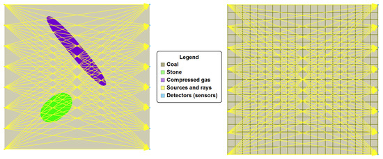 In the classic problem of computed tomography, e.g., in medical tomography, the assumptions of Kotelnikov’s theorem are easily fulfilled. This means that enough X-rays can be taken from sufficiently many angles. However, there are cases when such projections cannot be made. Such a situation may take place, for example, when the tested object is unavailable due to its location (ocean and space research), size (large building structures) or lack of access. A good example of the latter case is the coal bed. The tests on such a coal seam must be performed for economic reasons (then, the presence of undesirable scale in the coal is checked) or for safety reasons. In the latter case, compressed gas is sought in the coal seams, which can rapidly expand during extraction, ejecting rock fragments along with the gas. This is a threat to the health and life of the mining crew. Currently, most of the work to check the presence of such reservoirs of gas is carried out by drilling, but this method is time-consuming and involves significant costs.