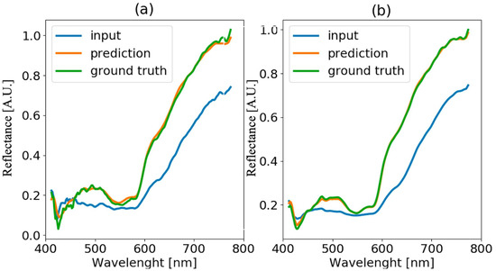 - The optimal weights and model architecture are obtained according the procedure described in Section 3.2. The output spectrum is stored in the memory and the procedure is iterated from step 3 for each available reflectance spectrum.