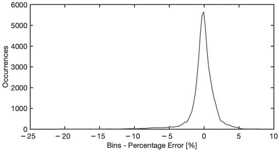 As this is a regression problem, the coefficient of determination was used as loss function because it is proven to be more informative than other indicators used in regression analysis evaluation [30]. The coefficient was calculated according to Equation (3). represents the observed dataset (ground truth), n the size of the dataset, and the predicted values. is the average of the observed data and it is used for the calculation of the total sum of squares. The value of varies between and 1. When it is equal to 1, the model represents the data perfectly. When assumes negative values, it means that the model does not follow the trend of the data [31].