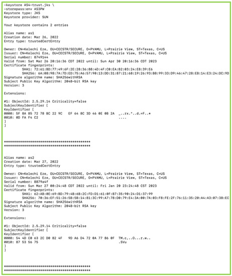 Figure 14 shows the Raspberry Pi device in the active state of communication using Transport Layer Protocol (TLS), Diffie–Hellman Ephemeral (DHE), and Rivest Shamir Adleman algorithm (RSA) for the exchange of cipher suites, authentication, and creating and exchanging session keys. Advanced Encryption Standard AES is used for encryption and Secure Hash Algorithm 256 (SHA256) for integrity check. SecIoTComm framework uses distributed authenticated encryption, where the handshake process is distributed between IoT devices involved in communication.