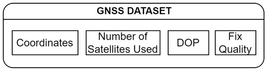 The used device supports GPS, GLONASS, BeiDou and Galileo GNSS standards. The following telemetry of GNSS was collected as is shown in Figure 3—GPS coordinates, number of satellites used, Dilution of Precision (DOP) and fix quality.