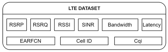 The following telemetry of LTE communication was collected, as is shown in Figure 4. Communication latency, bandwidth, Signal Interference Noise Ratio (SINR), Received Signal Strength Indicator (RSSI), Reference Signal Received Quality (RSRQ), Reference Signal Received Power (RSRP), E-UTRA Absolute Radio Frequency Channel Number (EARFCN), Cell Identification (Cell ID), Channel Quality Indicator (CQI) and Rank Indicator (Ri).