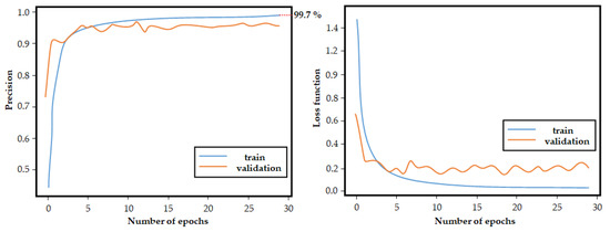 We consider two indicators within this assessment area—precision of horizontal signage detection and precision of vertical signage detection by an automated detection system. We detail the CNN used to evaluate the precision of vertical signage detection indicator from the collected sample data in Section 4.2. In this article, we will consider only vertical marking (vertical signs). Road traffic participants will also be included in the neural network training process.