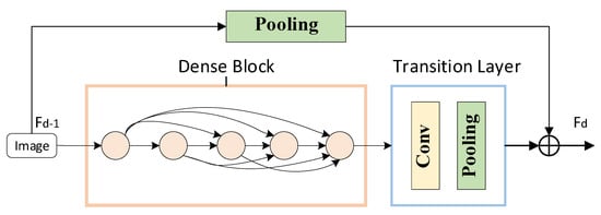 The core unit of LR-DenseNet is LRDB, which consists of a Dense Block, Transition Layer, and residual connection. The LRDB concrete structure is shown in Figure 3. Its own input information transfer from the front to rear makes a convolution of each subsequent layer before it can get the characteristics of the memory and realize the continuous memory mechanism. This kind of structure has a positive influence on the characteristics of the transmission, and makes the neural network have a continuous memory between each layer.