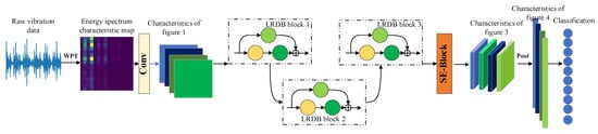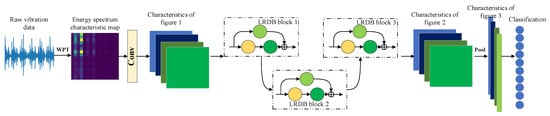 As can be seen from the figure, it is mainly composed of the LRDB module and SE-block module stacked. The general working process of the model is divided into the following steps: data acquisition and processing, network training, and online diagnosis. Network training is different from LR-DenseNet, as follows: