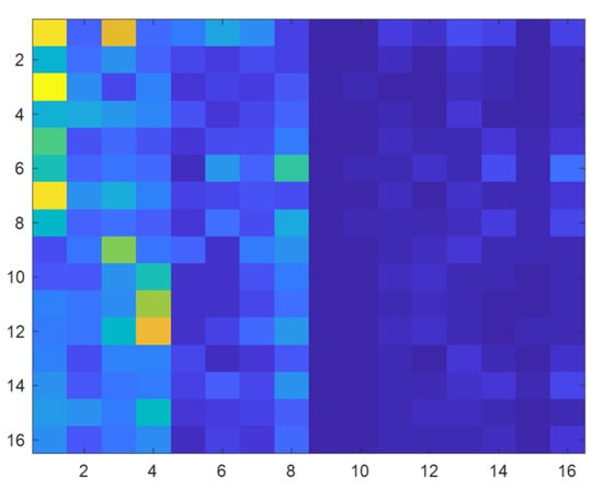 Experimental samples for our sample were built in accordance with the rules of 8-layer wavelet packet decomposition and reconstruction: 256 branch nodes, with corresponding wavelet packet coefficient to calculate the corresponding energy information, are obtained, and, finally, all the node energy information is evaluated for a building energy spectrum characteristic figure, and as the subsequent network model input.