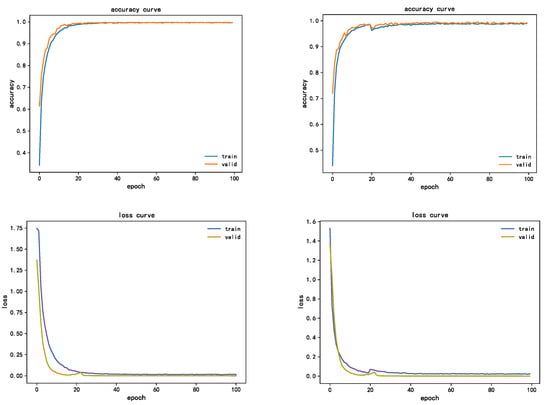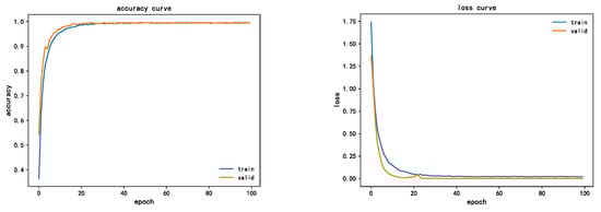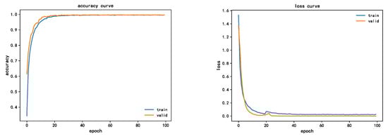 As can be seen from the figure, from the perspective of convergence performance, the improved model will converge in 20 epochs. In terms of diagnosis accuracy, the final diagnosis accuracy reaches 99.59%, which can identify the fault type well. From the error loss curve, the convergence speed is fast, and the final error is less than 0.05, with a good loss error, which indicates that transfer learning and SE attention mechanism have a good performance improvement for the model design.