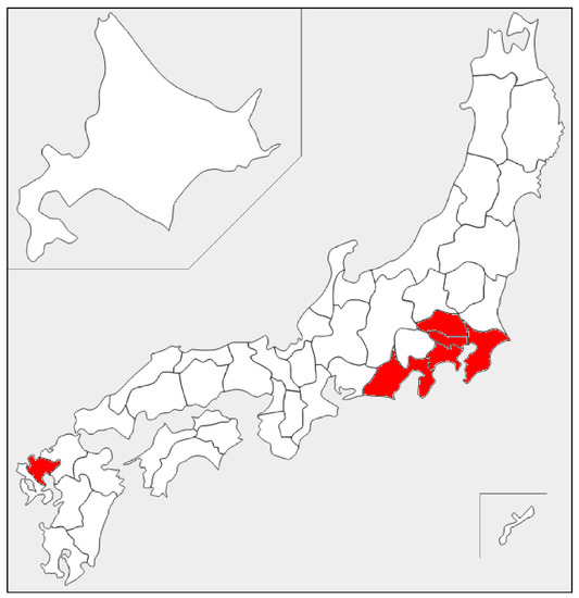 In order to measure the concentrations in occupied homes, 24 research participants living in urban areas were selected; Table 2 lists the participants’ houses and housing attributes. As shown in Figure 1, to exclude extremely warm or cold regions, participants’ houses were selected from the same climatic zone as Tokyo, according to definitions by Japan’s Ministry of Land, Infrastructure, Transport and Tourism [47]; Table 3 lists the climate data for Tokyo.