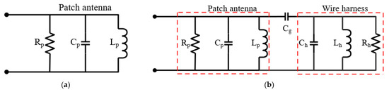 Equivalent circuit model. (a) Patch antenna. (b) Wire located above patch antenna.