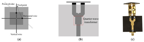 Structure of dual-feed patch antenna (a) Top view. (b) Side view. (c) Fabricated dual-feed patch antenna.