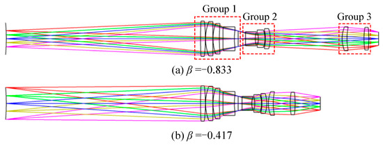3.2.1. Design of the Telecentric Relay Imaging Group with Variable Magnification