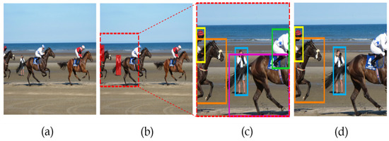 Illustration on bounding boxes removal [27] (a) Input image, (b) Small RoI, (c) Draws all bounding boxes result in the image of small RoI, (d) the results after removing at edge bounding boxes.