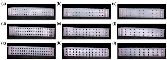 Cross-sectional images of the alignment airgap dielectric layer. (a–c) pore size: 300 μm, distance: 1 mm, 1.5 mm, 2 mm. (d–f) pore size: 400 μm, distance: 1 mm, 1.5 mm, 2 mm. (g–i) pore size 500 μm, distance: 1 mm, 1.5 mm, 2 mm.