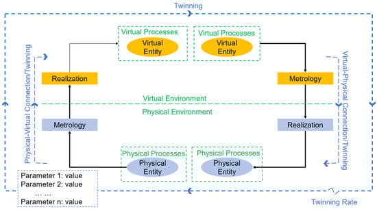 Physical and virtual processes are the specific activities performed on each of the levels, i.e., simulations, modelling, prediction, and optimization of virtual processes or manufacturing tasks, along with the control and design of physical processes. Finally, the twinning rate defines how the frequency at which the virtual and physical environments are synchronized, which leads to the consideration of digital twins as a real-time virtualization.