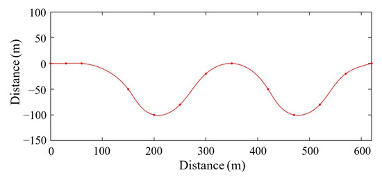 People usually encounter curved roads in real-world driving conditions. The model of a curved road is established in CarSim, as shown in Figure 14. The road adhesion coefficient is set to be 0.9. The first preceding vehicle (labelled preceding 1) drives at 36 km/h in front of the ego vehicle and has the initial spacing of 65 m. The second preceding vehicle (labelled preceding 2) drives at 25 km/h in the adjacent line and has the initial spacing of 100 m.