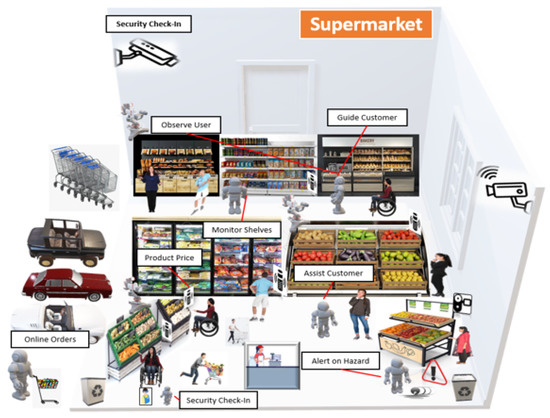 Cheng et al. [21] proposed the design and implementation of a service robot with three types of services to provide to customers in a supermarket. The robot’s first service is to execute clients’ orders by locating, picking up, and placing the item in the basket. The second service is following the client and providing assistance as needed, while the third service entails moving about to serve customers as needed. The results revealed that the service robot delivers practicable and intelligent interaction, as well as a convenient and comfortable shopping experience for the consumer.