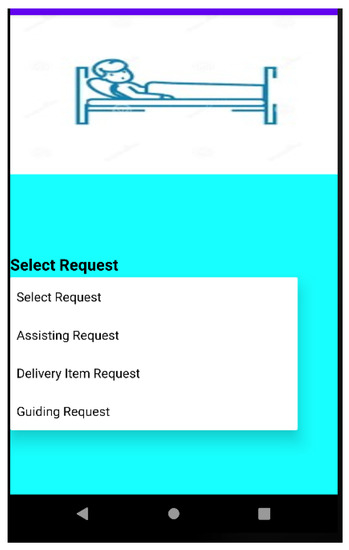 Concept Development: Following the first phase of the methodology, Table 4 displays the core functions performed by each device in terms of children’s hospital environment. The targeted smart devices are actuators (IoT devices): robots and smart cameras. Mediators (Communicating Devices): smartphones and tablets, and administrators (Admin Devices): smartphones and tablets. Figure 7 shows the mediator application’s interface, which users may use to interact with the robot. The children’s hospital is the environment in which the smart devices must be installed, and the end-users with whom the devices will interact include patients, doctors, staff members, and visitors.