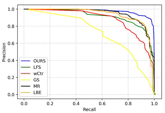 where represents the sum of pixels with a value of 1. means saliency map means ground truth. If the PR curve is closer to the (1,1) position, the higher the precision rate under the same recall rate, the better the algorithm performance.