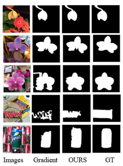 In this part, we analyzed the focus degree results generated by the direct gradient method and the gradient method in this paper, including the degree of suppression of the defocused area and the results generated by the fusion GrabCut. At the same time, we also compared with the results generated using the traditional GrabCut algorithm.