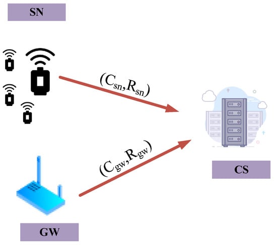 Figure 1 shows the IIoT-oriented wireless-sensor-communication network model. The model is divided into a three-tier infrastructure of wireless sensors, gateways, and cloud servers. After the wireless sensor is awakened, it collects real-time data about the environment or device. The wireless sensor sends the data to the gateway and then immediately goes into hibernation mode to save power. After receiving real-time data from numerous wireless sensors, the gateway uploads these real-time data to the cloud server.