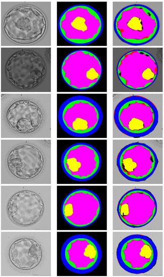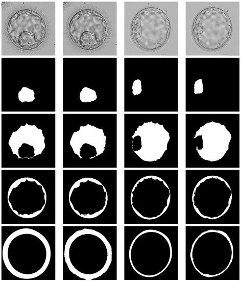 - Singh, A.; Au, J.; Saeedi, P.; Havelock, J. Automatic segmentation of trophectoderm in microscopic images of human blastocysts. IEEE Trans. Biomed. Eng. 2014, 62, 382–393. [Google Scholar] [CrossRef] [PubMed]