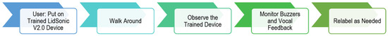 Light detection and ranging, or LiDAR, is a common remote sensing technique used for determining an object’s distance. Chitra et al. [47] proposed a handsfree LVU (LiDARs and Vibrotactile Units) discrete wearable gadget that helps blind persons to identify impediments. Proper mobile assistance equipment is required. The proposed gadget consists of a wearable sensor strap. Liu et al. proposed HIDA. This is a lightweight assistance system used for comprehensive indoor detection and avoidance based on 3D point cloud instance segmentation and a solid-state LiDAR sensor. The authors created a point cloud segmentation model with dual lightweight decoders for semantic and offset predictions, ensuring the system’s efficiency. The segmented point cloud was post-processed by eliminating outliers and projecting all points onto a top-view 2D map representation after the 3D instance segmentation.