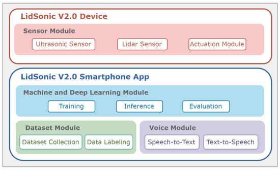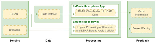 We comprehensively describe the proposed system’s hardware and software design, having constructed their prototype implementations and tested them in real-world environments. Using the open platforms WEKA and TensorFlow, the entire LidSonic system was built with affordable off-the-shelf sensors and a microcontroller board costing less than USD 80. Essentially, we provide the design of inexpensive, miniature green devices that can be built into, or mounted on, any pair of glasses or even a wheelchair so as to help the visually impaired. Our approach affords faster inference and decision-making using relatively low energy with smaller data sizes. Smaller data sizes are also beneficial in communications, such as those between the sensor and processing device, or in the case of fog and cloud computing, because they require less bandwidth and energy and can be transferred in relatively shorter periods of time. Moreover, our approach does not require a white cane (although it can be adapted to be used with a white cane) and, therefore, it allows for handsfree operation.