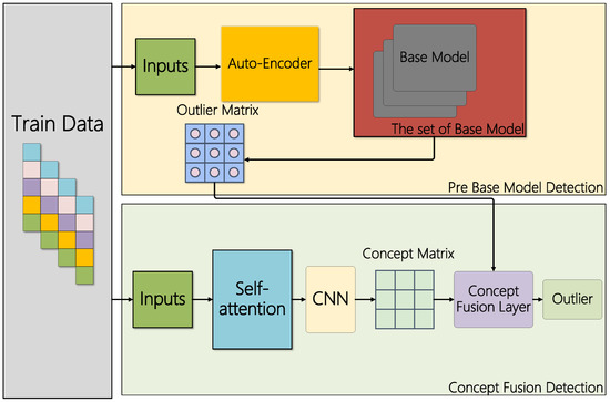 where is the base learner, is the outlier matrix obtained after the base learner detection, and is composed of outliers obtained by the base learner. The learner can be any supervised classifier. In theory, heterogeneous base learners can make more robust coarse-grained detection. Diversity and heterogeneity among base learners can provide different perspectives for classification.